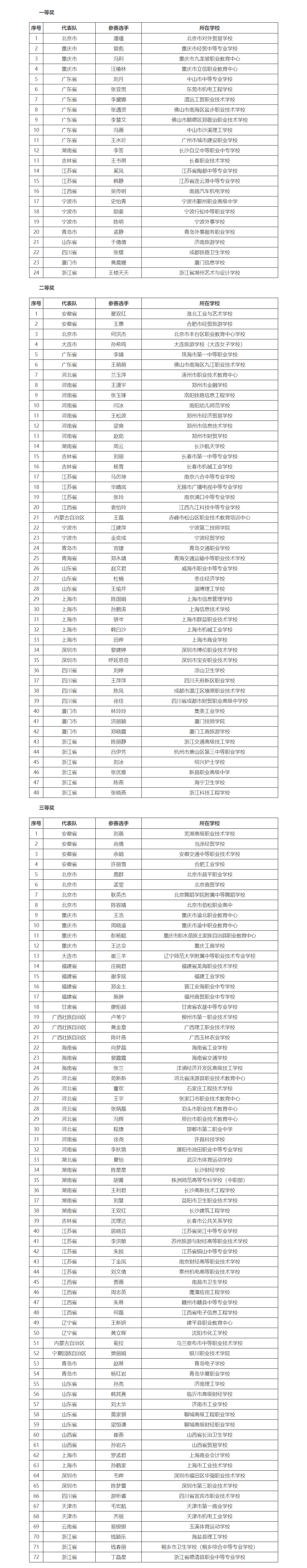 经网络初评和决赛,2021年全国职业院校技能大赛中等职业学校班主任能力比赛成功举办。来自各省(区、市)、新疆生产建设兵团和计划单列市的239名教师参加了比赛,产生一等奖24名、二等奖48名、三等奖72名。经网上公示,现将获奖选手名单公布如下(以代表队拼音首字母为序):