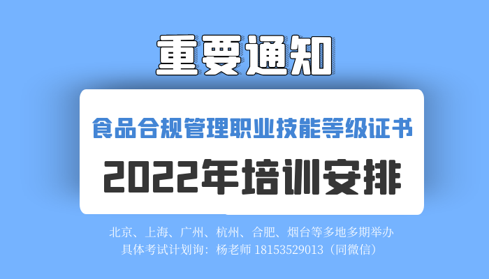 1+X食品合规管理职业技能等级证书(高级)班-2022年排期计划