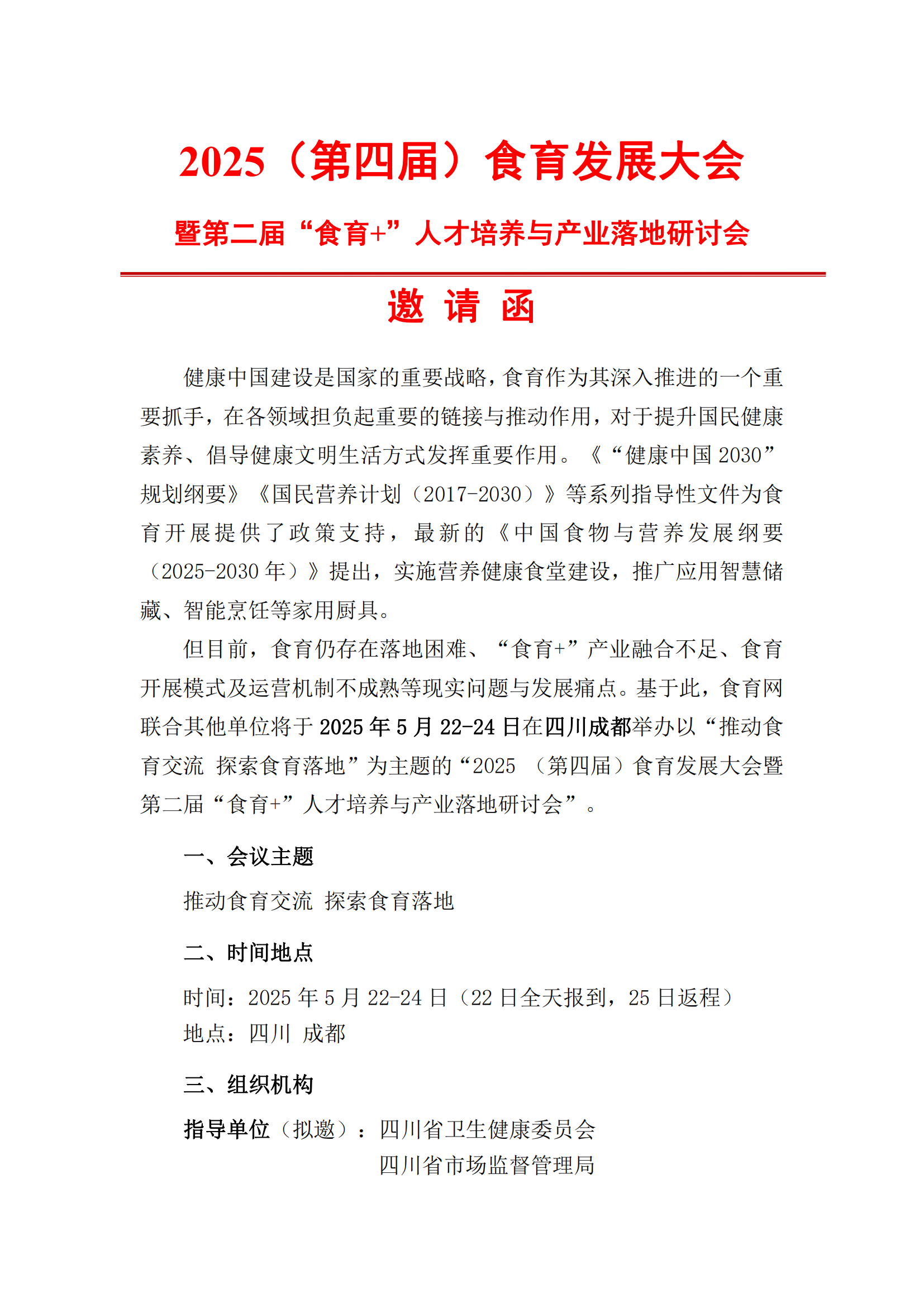 附件:2025(第四届)食育发展大会暨第二届“食育+”人才培养与产业落地研讨会邀请函//m.hao736.com/uploads/20250326/6ff6d472f55511b9fad880d18e4201dd.pdf
